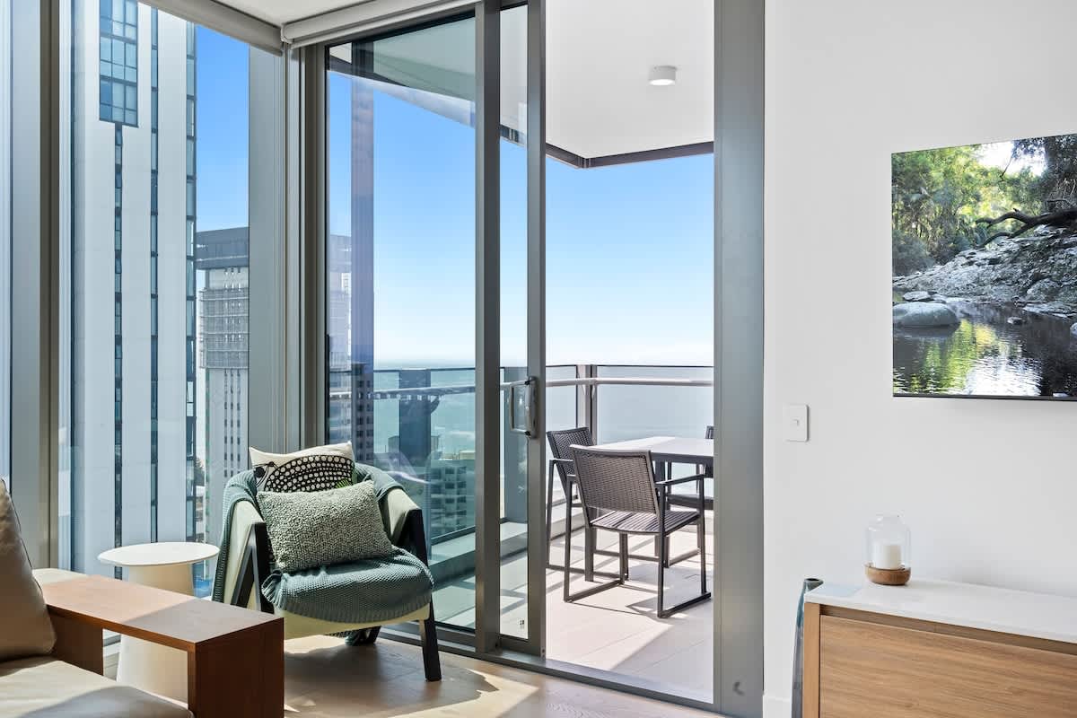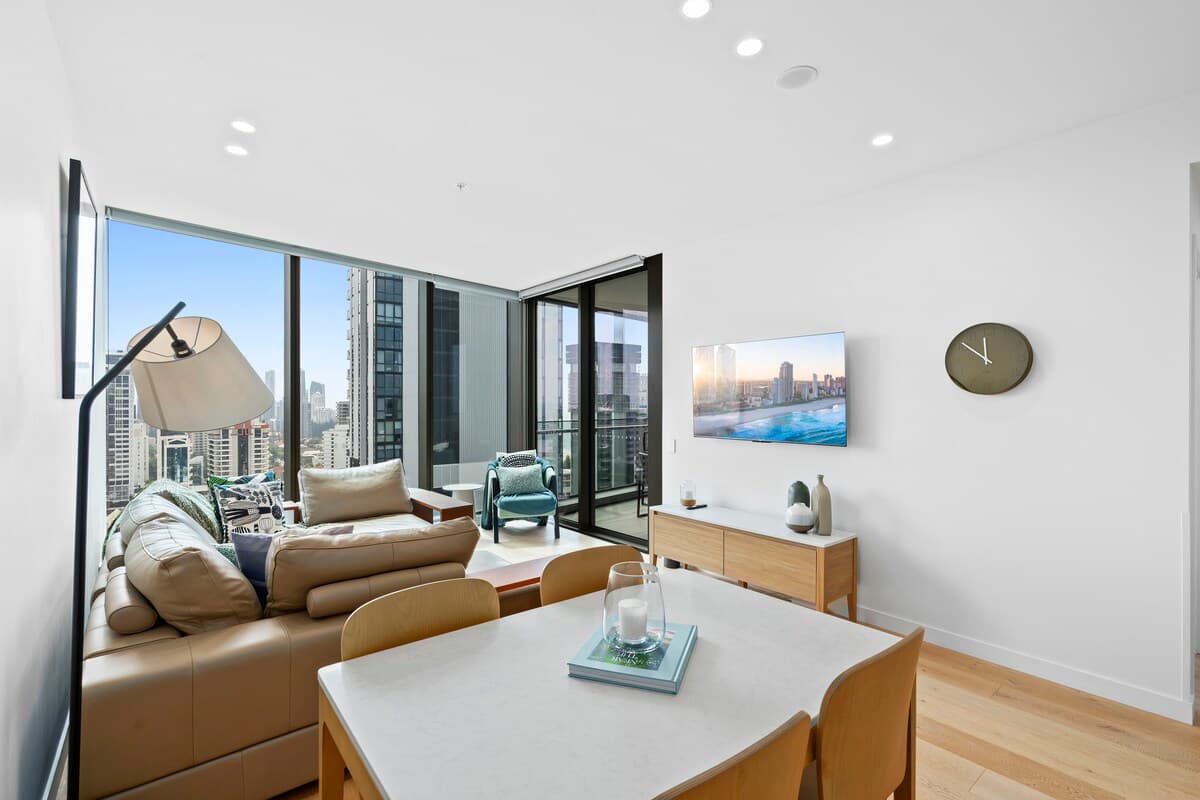 The property on level 20 boasts a balcony with outdoor setting to enjoy a meal or drinks in style, while looking out over the stunning Gold Coast .