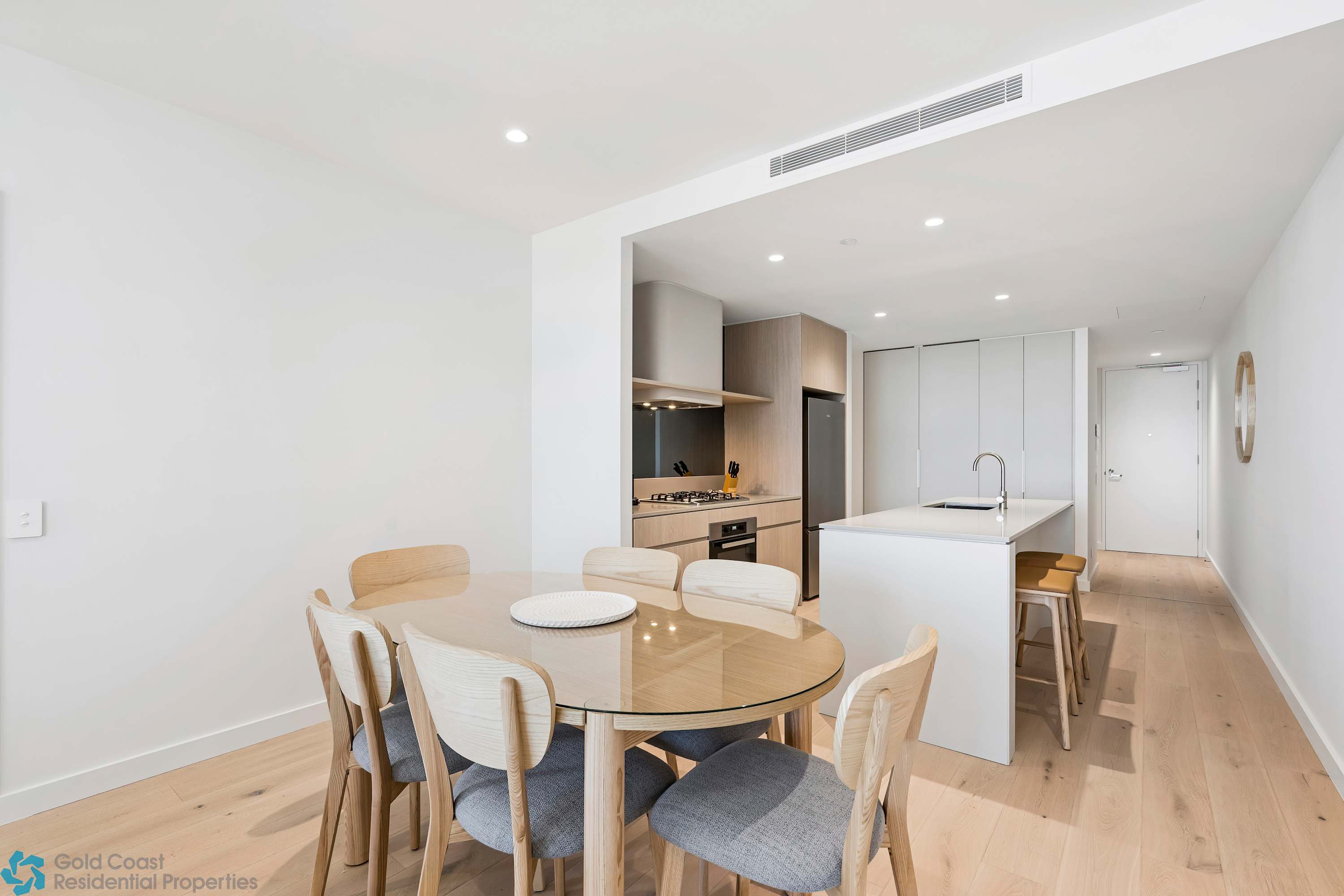 The open-plan living and dining area is perfect for unwinding after a day by the sea, featuring comfortable seating and plenty of natural light. Step out onto the balcony to enjoy your morning coffee or simply soak in the uninterrupted ocean views and soothing coastal breeze.