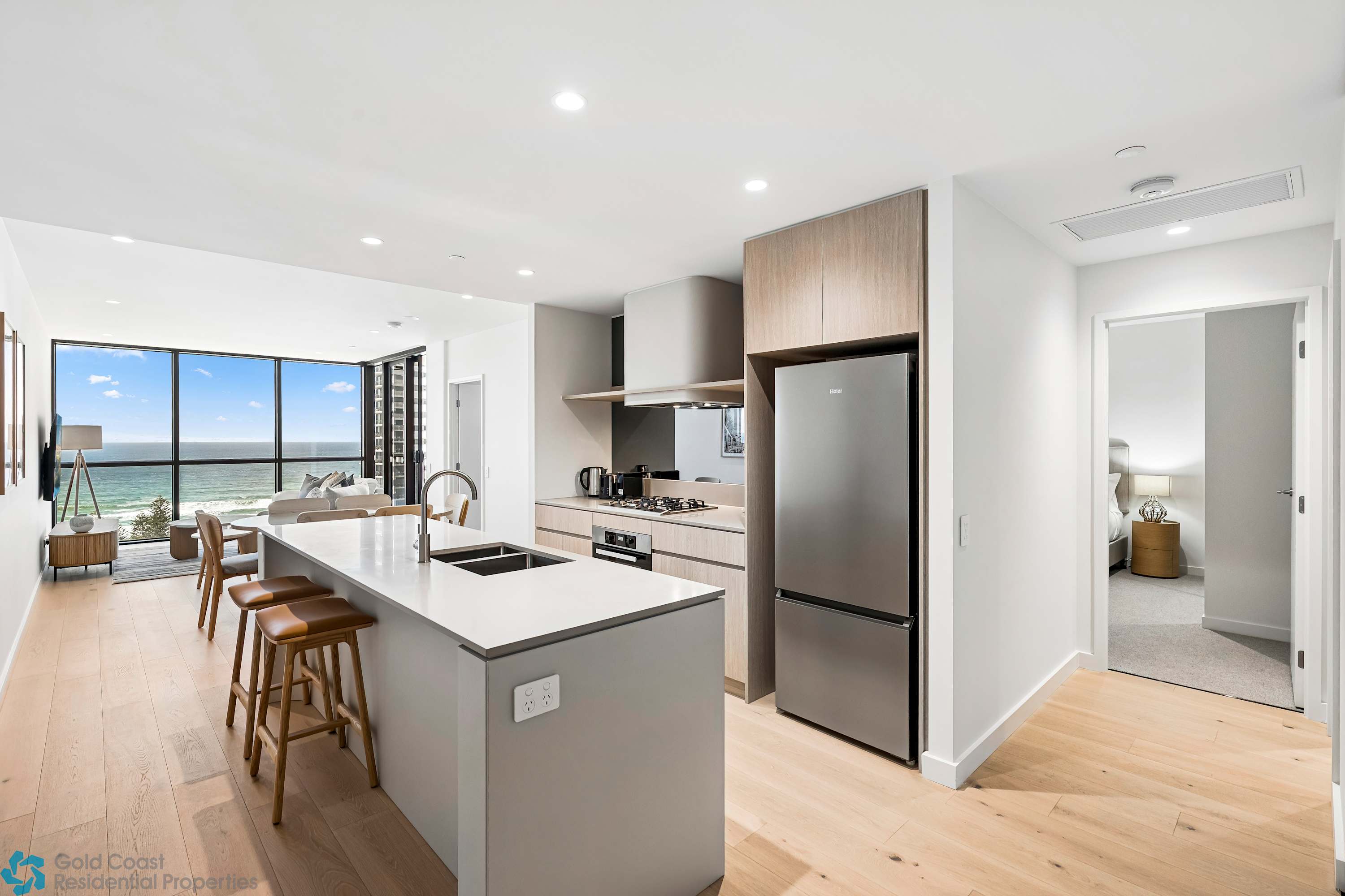 Wake up to breathtaking ocean views in this beautifully styled 2-bedroom, 2-bathroom apartment, thoughtfully designed for a relaxing coastal escape. With modern furnishings and a fresh, beach-inspired interior, the space welcomes you with a calm and inviting atmosphere from the moment you arrive.